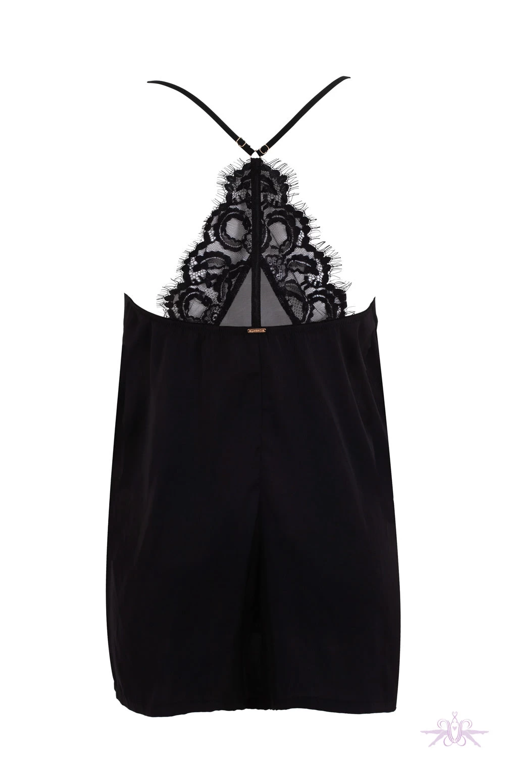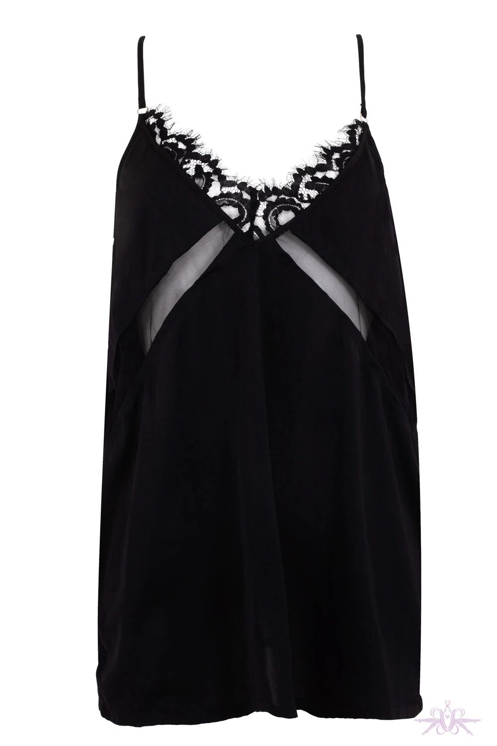 Dense satin gives an opulent weight to this chemise from Bluebella, ensuring this piece feels as good as it looks. Delicate eyelash lace along the neckline creates a softness, whilst superfine mesh under the bust keeps this piece contemporary. This mesh reappears in the shoulder straps, arranged in a cross-over in the back to frame and flatter the shoulders. An elegant and sensual piece.