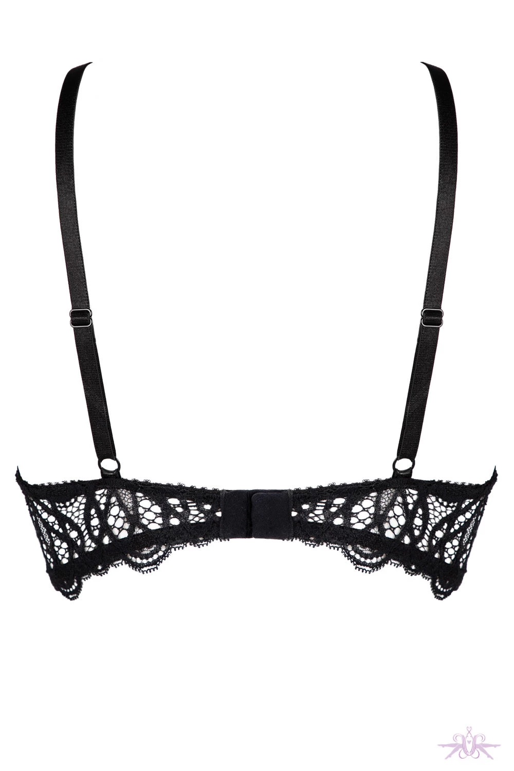 A seductive underwired sheer mesh black bra from the Angels collection at Jolidon. This black lace bra is so glamorous with its sheer floral mesh detailing and cut out opening between the bust. It is underwired which enhances the bust beautifully and the elastic strapping to the neck and shoulders is comfortable creating an alluring piece of lingerie. Matching items are also available.