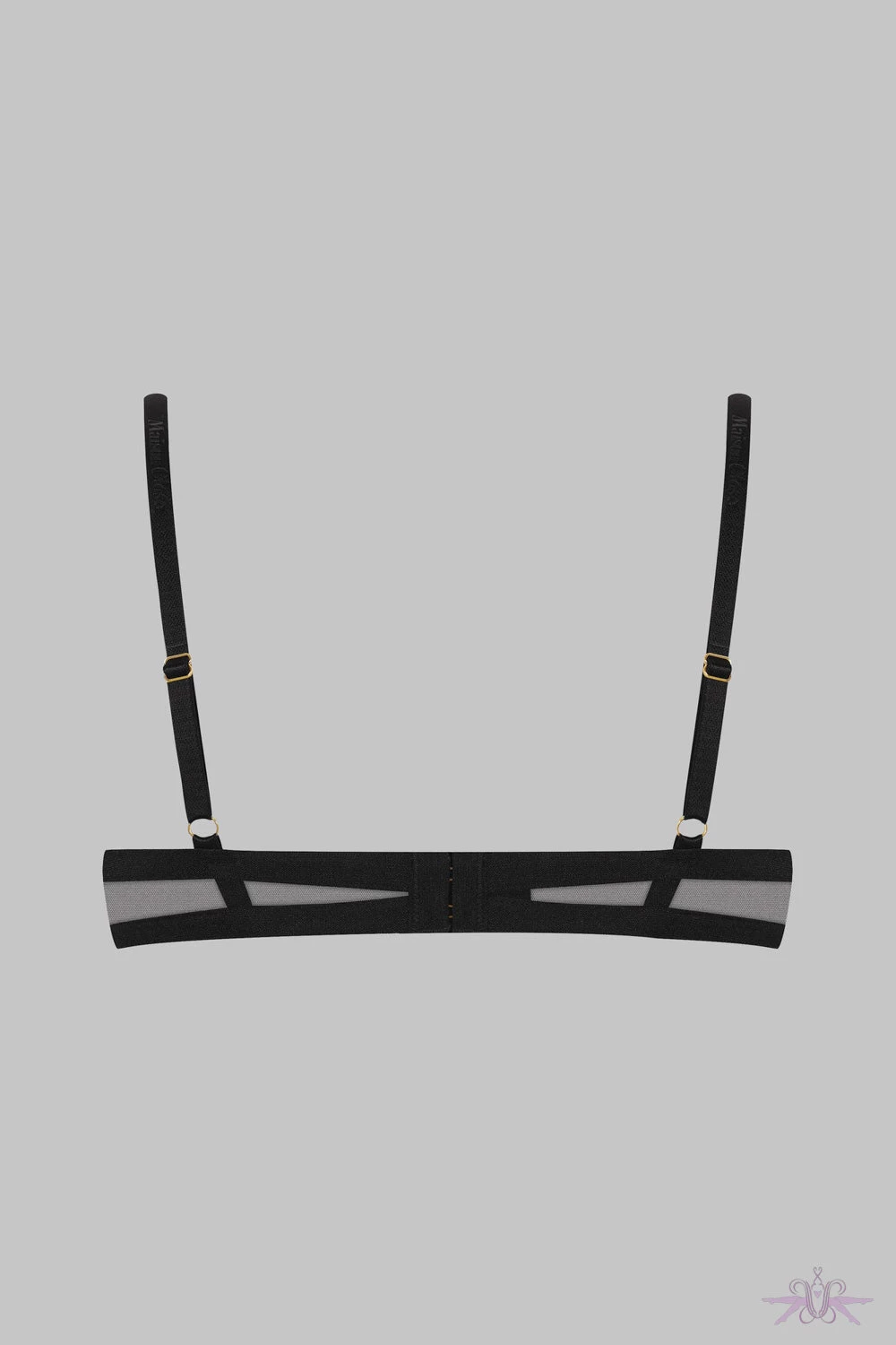 An alluring naked breast bra from Maison Close. This open bra in a black colour has no under wiring and features soft tulle with a sheer iridescent appearance.