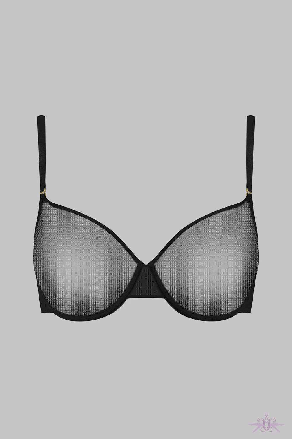 A lovely sheer wired bra in sheer mesh. This seamless bra has moulded cups that fit and shape the breasts perfectly. Sleek and subtle hook and loop back closure. Thin, removable and adjustable straps.
