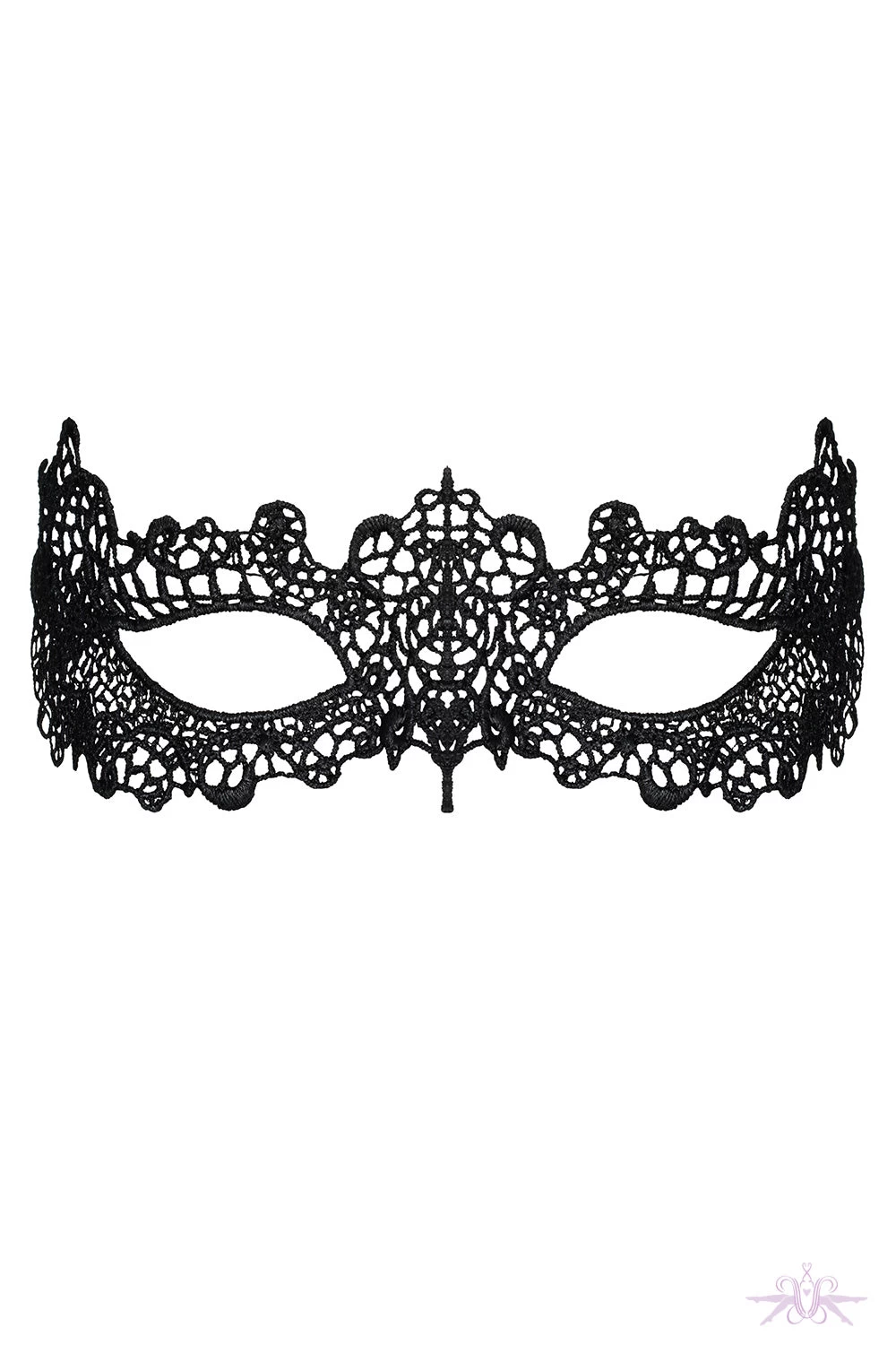 A feminine guipure lace mask from obsessive. Comprising Guipure lace with satin ribbon ties. This coquettish item is sure to tempt.