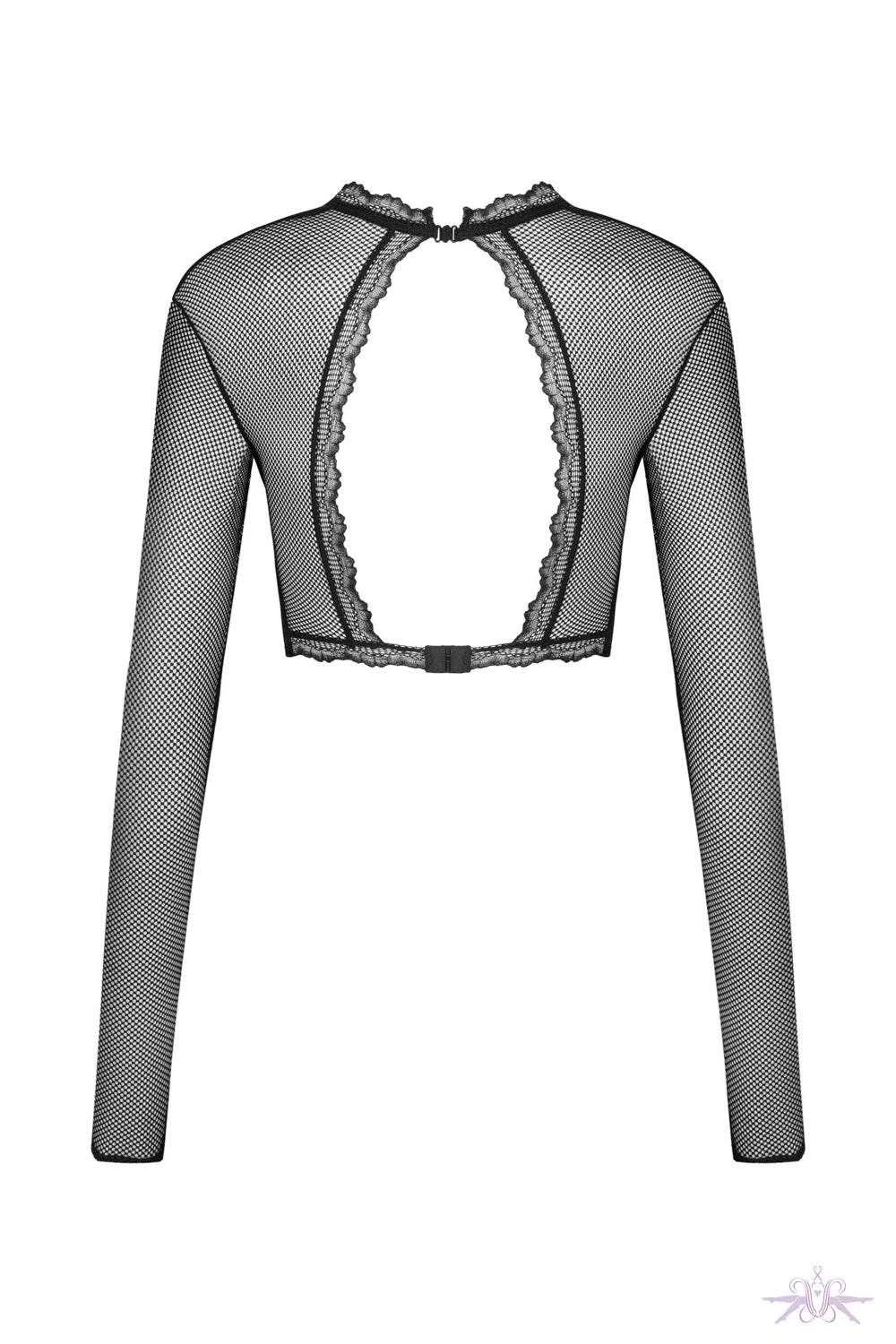 - Black top with open cups and long sleeves