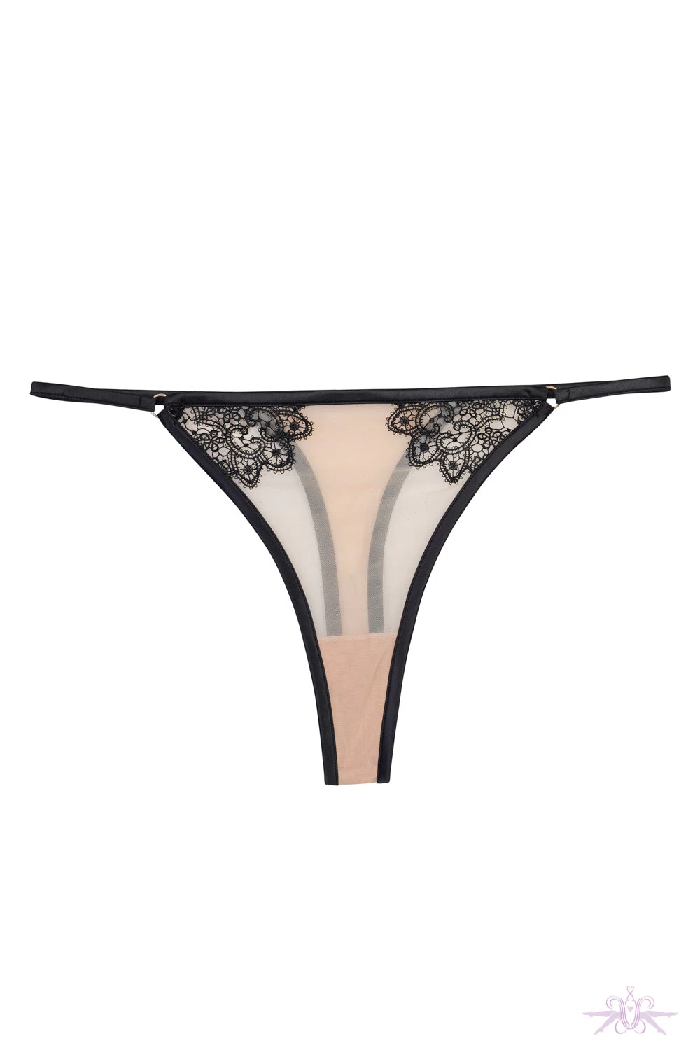 A tantalising sheer delicate thong from Playful Promises. Sheer nude mesh with delicate black lace accents make this thong a gorgeous addition to your lingerie collection. Edged in luxurious satin for that opulent feel this thong can be styled with matching items from the Anaise Range.