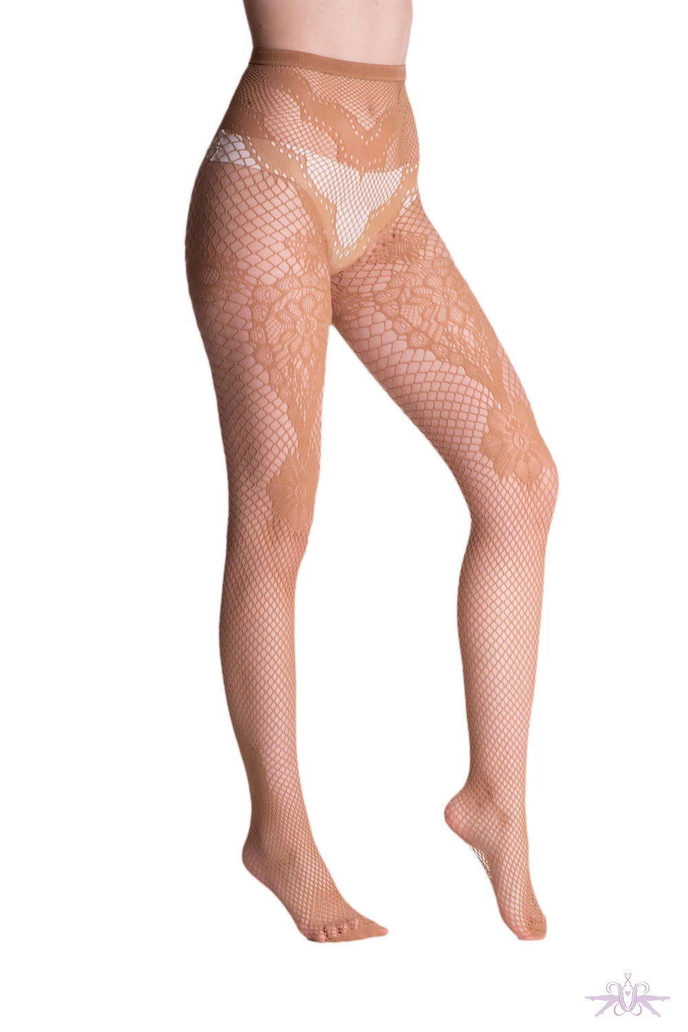 A lovely fishnet tight with floral inset detail from Trasparenze. A medium fishnet with detail to the thigh and ankle. Beautifully refined and elegant.